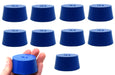 Pack of ten #10.5 stoppers made of solid, long lasting neoprene rubber. Blue color. Manufactured according to sizes recommended by ASTM standards. Each stopper measures 25mm in length, has a base diameter measuring 45mm, and a top diameter measuring 53mm. The neoprene rubber construction is suitable for use with petroleum products, minerals, oils and fats, as well as most inorganic acids and bases. Resistant to temperatures ranging from -40 to 130°C.