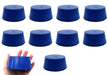 Pack of ten #14 stoppers made of solid, long lasting neoprene rubber. Blue color. Manufactured according to sizes recommended by ASTM standards. Each stopper measures 39mm in length, has a base diameter measuring 75mm, and a top diameter measuring 90mm. The neoprene rubber construction is suitable for use with petroleum products, minerals, oils and fats, as well as most inorganic acids and bases. Resistant to temperatures ranging from -40 to 130°C.
