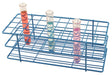 Blue Epoxy Coated Steel Wire Test Tube Rack, 40 Holes, Outer Diameter permitted of tubes 20-22 mm or less, 4 X 10 Format Rack measures 10.5" x 4.5" 3.25" Holds a total of 40 test tubes. Coated steel wire racks are chemical and corrosion resistant. Coating provides a protective and smooth coat that is impervious to weak acids , bases and salts. With stands temperatures up to 121 degrees C ( 249.8 degrees F)