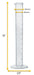 Cylinder stands 10" tall, with a base measuring 2.8" wide. Outer diameter of cylinder body measures 1.4", and inner diameter measures 1.2".