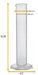 Cylinder stands 13.75" tall, with a base measuring 4.3" wide. Outer diameter of cylinder body measures 2.4", and inner diameter measures 2.1".