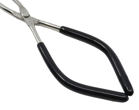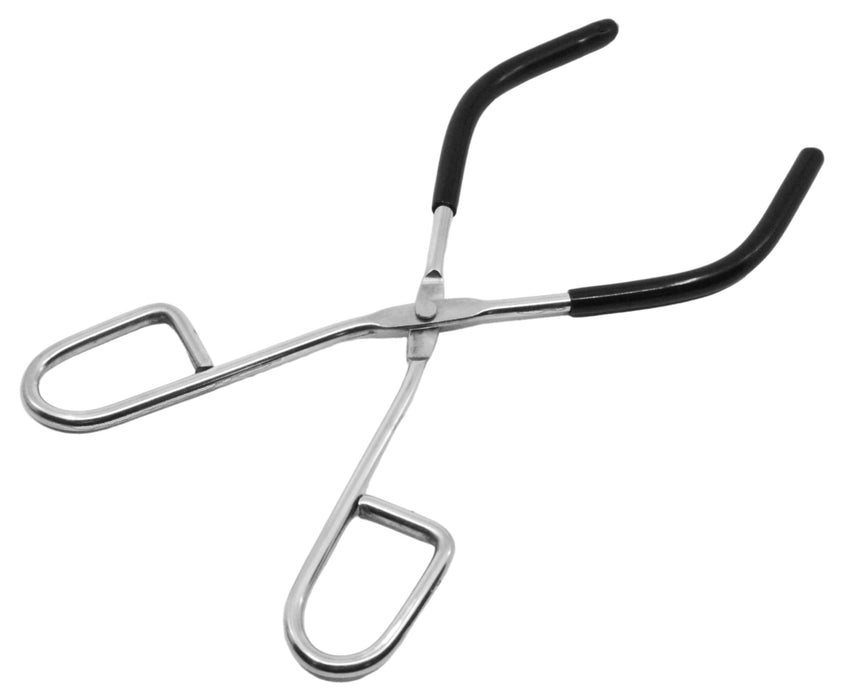 Beaker tongs with extra long handle for use with beakers (50mL to 2000mL). Curved with rubber coated tips for added grip strength and safety. Made of high quality rust and corrosion resistant stainless steel. Long and rigid design with rubber ends makes tongs excellent for holding beakers of different sizes.