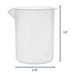 250ml beaker made of premium quality, translucent polypropylene plastic. 10ml raised graduations and specifications. Beaker features a tapered spout for easy pouring.