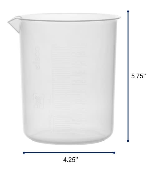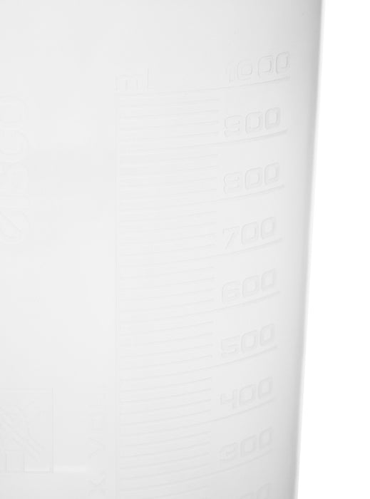 Pack of 3, 1000ml beakers made of premium quality, translucent polypropylene plastic. 20ml raised graduations and specifications. Each beaker features a tapered spout for easy pouring.