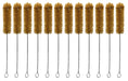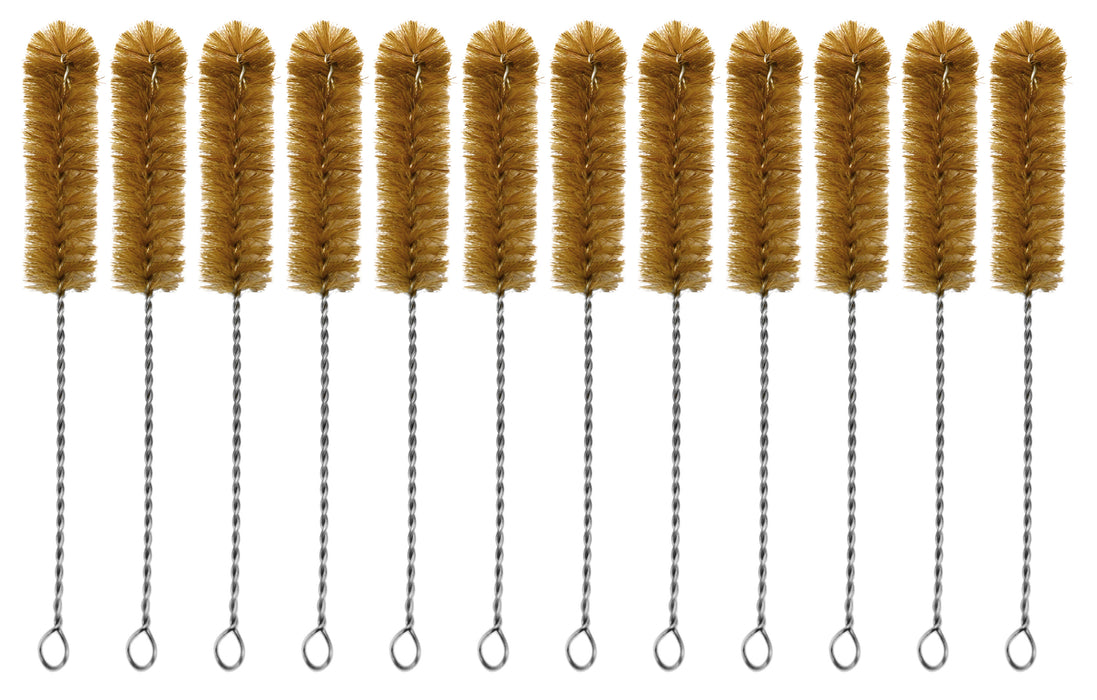 Pack of 12 brushes. These medium soft fiber bristle brushes are perfect for scrubbing hard to reach, narrow spaces - pipes, cups, bottles, jars, vases, laboratory glassware, measuring cylinders, beakers and more. Each brush features a fanned end that allows you to easily clean rounded surfaces and corners. Each brush has a stainless steel, twisted handle that is semi-flexible, allowing you to modify the shape as needed. Each handle has a looped end, for easy hanging. Designed for professional science laboratories but is perfect for a variety of applications in the home or garage.