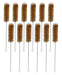 Pack of 12 brushes. These soft fiber bristle brushes are perfect for cleaning hard to reach, narrow spaces - test tubes, pipes, cups, bottles, jars, vases, laboratory glassware, measuring cylinders, beakers and more. Each brush features a fanned end that allows you to easily clean rounded surfaces and corners. Each brush has a stainless steel, twisted handle that is semi-flexible, allowing you to modify the shape as needed. Each handle has a looped end, for easy hanging. Designed for professional science laboratories but is perfect for a variety of applications in the home or garage.