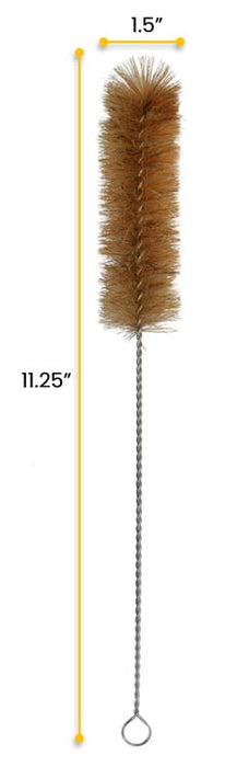 Each brush measures 11.25" in total length, with the bristle section measuring 4.5" and 1.5" in diameter, and handle measuring 6.75". Fits inside items with diameters of 1.2" - 1.4".
