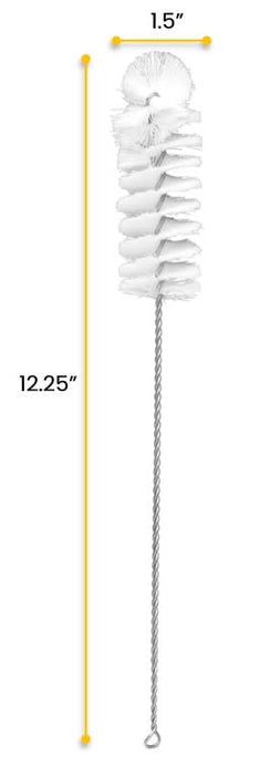 Each brush measures 12.25" in total length, with the bristle section measuring 4.25" in length and 1.5" in diameter, and handle measuring 8". Fits inside items with diameters of 1.2" - 1.4".
