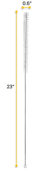 Each brush measures 23" in total length, with the bristle section measuring 8.5" in length and 0.6" in diameter, and handle measuring 14.75".