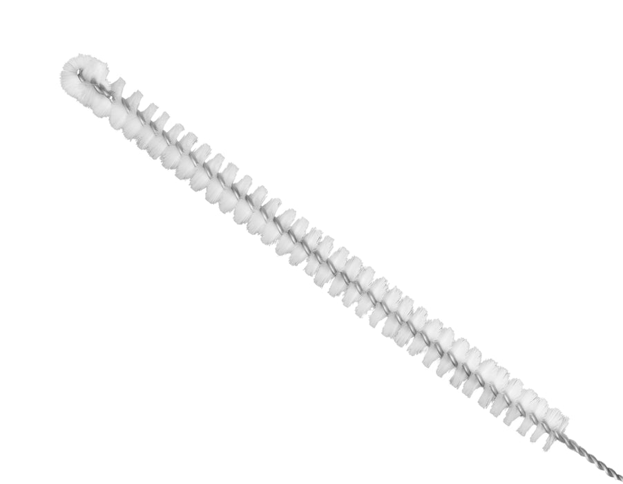 Pack of 5 brushes. The semi-stiff, nylon fiber bristles are perfect for scrubbing hard to reach, narrow spaces. Designed for cleaning laboratory burettes , these brushes are ideal for cleaning tubes, pipes, hoses and more. Each brush has a fanned end, which allows you to easily clean rounded surfaces, and reach all crevices and corners. The stainless steel, twisted handles are semi-flexible, allowing you to modify the shape as needed. Each handle has a looped end for easy hanging. Designed for professional science laboratories but is perfect for a variety of applications in the home or garage.