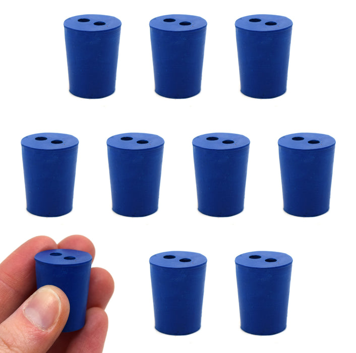 - NEOPRENE STOPPERS WITH 2 HOLES ||Pack of 10 neoprene rubber stoppers. Each stopper features a single hole measuring 5mm in diameter. Blue color