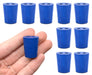 Pack of ten #2 stoppers made of long lasting neoprene rubber. Blue color. Each stopper features two holes measuring 5mm in diameter. Manufactured according to sizes recommended by ASTM standards. Each stopper measures 25mm in length, has a base diameter measuring 16mm, and a top diameter measuring 20mm. The neoprene rubber construction is suitable for use with petroleum products, minerals, oils and fats, as well as most inorganic acids and bases. Resistant to temperatures ranging from -40 to 130°C.