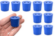 Pack of ten #5.5 stoppers made of long lasting neoprene rubber. Blue color. Each stopper features two holes measuring 5mm in diameter. Manufactured according to sizes recommended by ASTM standards. Each stopper measures 25mm in length, has a base diameter measuring 24mm, and a top diameter measuring 28mm. The neoprene rubber construction is suitable for use with petroleum products, minerals, oils and fats, as well as most inorganic acids and bases. Resistant to temperatures ranging from -40 to 130°C.