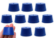 Pack of ten #8 stoppers made of solid, long lasting neoprene rubber. Blue color. Manufactured according to sizes recommended by ASTM standards. Each stopper measures 25mm in length, has a base diameter measuring 33mm, and a top diameter measuring 41mm. The neoprene rubber construction is suitable for use with petroleum products, minerals, oils and fats, as well as most inorganic acids and bases. Resistant to temperatures ranging from -40 to 130°C.