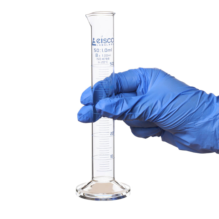 Graduated Cylinder, 50ml - Class B - Blue Graduations, Round Base