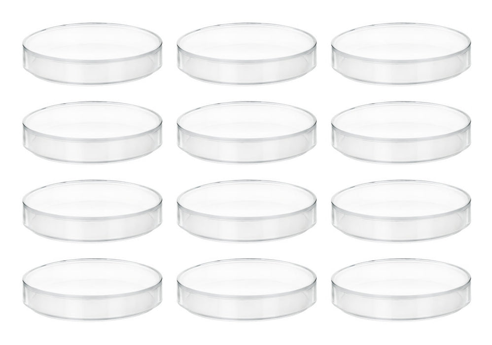 - Pack of twelve petri dishes with lids. Dishes each measure 6" (153mm) in diameter and 0.75" (20mm) deep. Non-toxic, non-sterile, multifunctional and ready to use