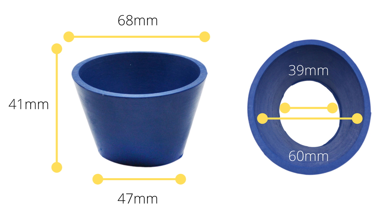 Filter Adapter Tapered Cone, Size 6 - Designed for use with Buchner Funnels - 68mm Top, 47mm Bottom, 41mm Height, 4mm Thickness - Neoprene Rubber - Eisco Labs
