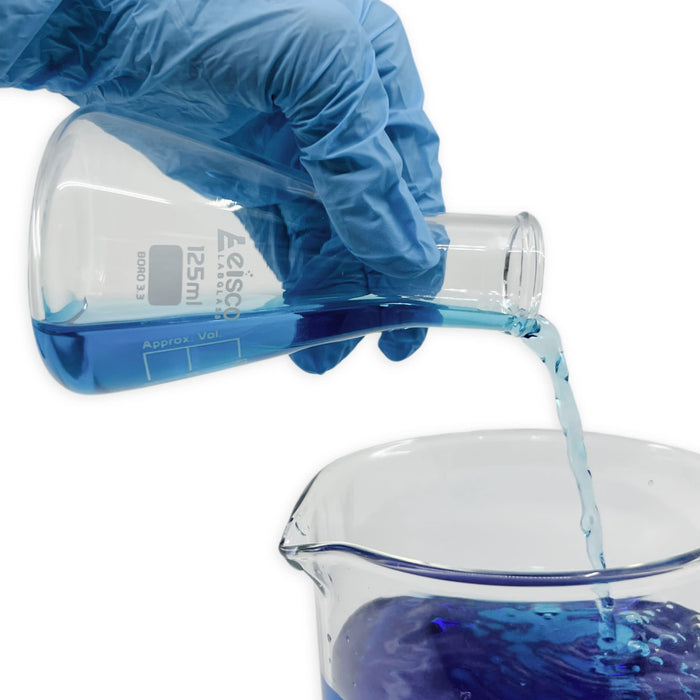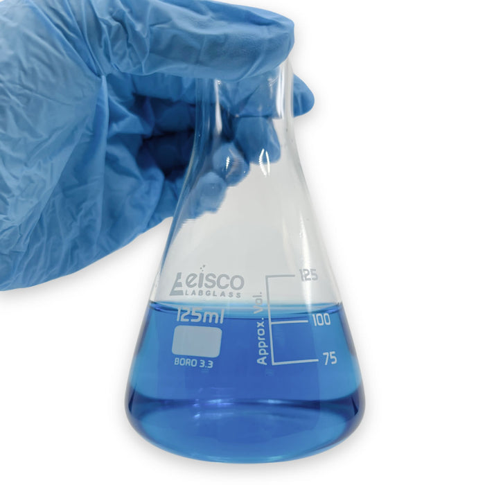The Eisco Labs 125mL Conical Flask, made from borosilicate glass, is designed for use in chemistry, biology, and environmental science labs. Its narrow neck minimizes evaporation, while its conical shape allows for easy mixing of solutions. Ideal for titrations, microbial culture growth, and chemical reactions. Resistant to high temperatures, this flask is suitable for direct heating. Perfect for scientists, researchers, and students conducting a range of laboratory experiments.