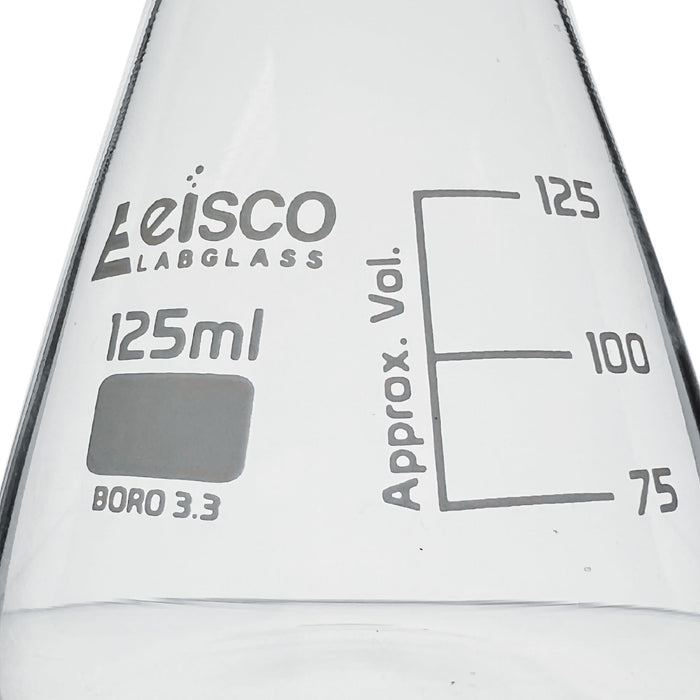 Eisco Labs - 125mL Conical Flask, Narrow Neck, Borosilicate Glass - Ideal for Mixing Solutions, Titrations, Microbial Cultures, and Heating in Chemistry, Biology, and Environmental Science Labs