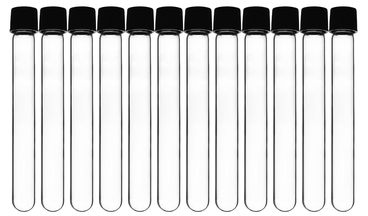 Pack of twelve, round bottom culture tubes, each with a 15ml capacity. Tubes are made of high quality Borosilicate 3.3 Glass, and include a Bakelite screw cap with rubber liner for a leak proof seal. Tubes are useful for a variety of laboratory applications including transferring and storing chemicals and samples, and for handling and culturing biological material. Also suitable for use in the home or garage for crafting and storage.