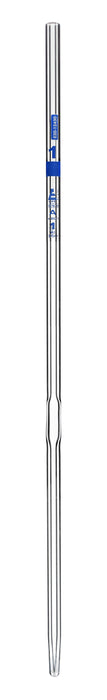 Volumetric pipette with a 1ml capacity. Color code: Blue. Eisco Labs volumetric pipettes feature color coding for easy volume identification. Made of high-quality Borosilicate 3.3 glass, and features a Class A tolerance of ±0.007ml, as per DIN ISO 648 standard. Pipette is calibrated for delivery. Single, white graduation line, and blue specifications for optimal clarity against clear liquids.