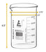 Beaker measures 4.3" tall, and has an inner diameter of 2.5" and an outer diameter of 2.75".
