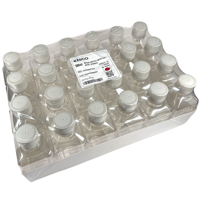 - STERILE MEDIA BOTTLES || Includes 24 sterile 500mL PETG media bottles with secure HDPE caps. Ideal for storing lab reagents, buffers, and media in scientific or biopharmaceutical environments.