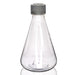 1L sterile PETG Erlenmeyer flask with vented caps, pack of 1. Flat bottom for stability, gamma sterilized, and USP Class VI compliant. Ideal for biopharmaceutical applications, media prep, and cell culture.