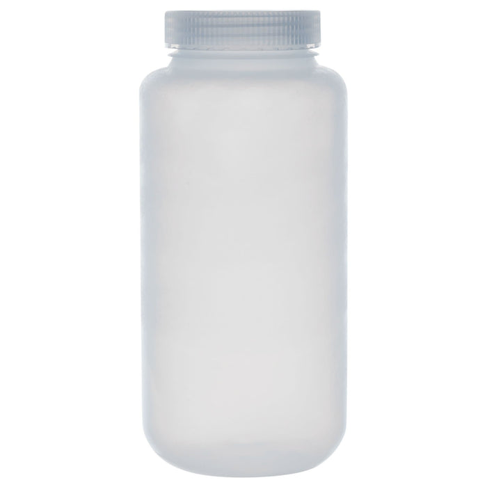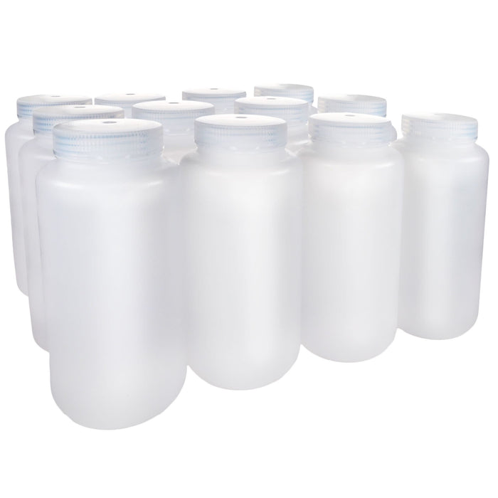 Eisco - 1L Wide Mouth LDPE Reagent Bottles with Polypropylene Caps, Pack of 12, Non-Sterile, Translucent Laboratory Containers, -100 to 80°C Temperature Range