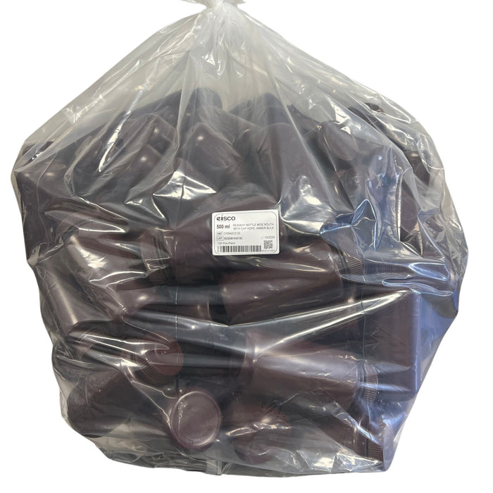 - BULK PACK FOR LAB NEEDS || Includes 125 amber 500mL wide-mouth HDPE reagent bottles with polypropylene caps, ideal for labs needing large quantities for light-sensitive storage and transport.