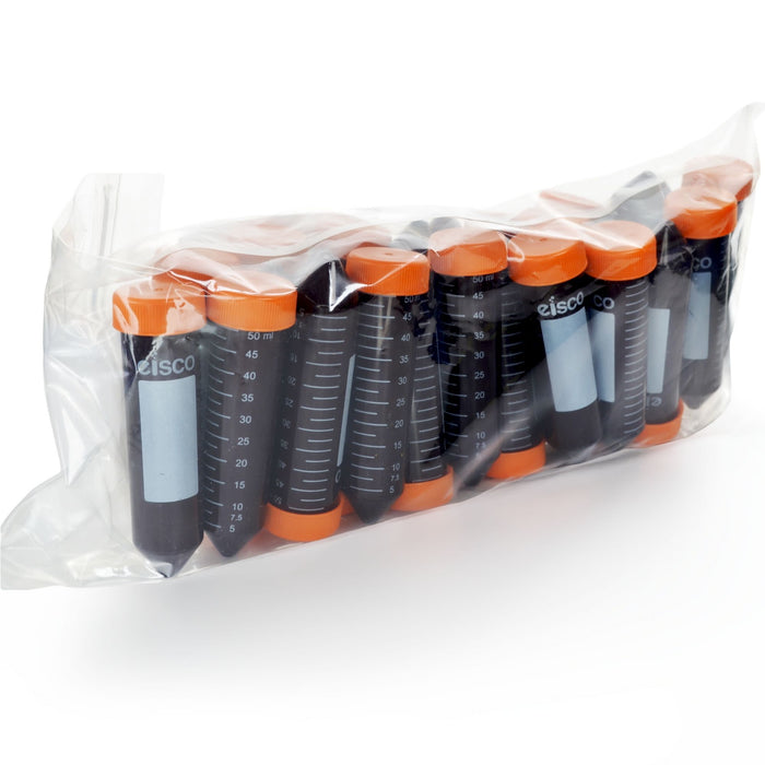 Eisco - Pack of 25, 50mL Non-Sterile Amber Centrifuge Tubes, Polypropylene, Flat Cap, Lab-Grade