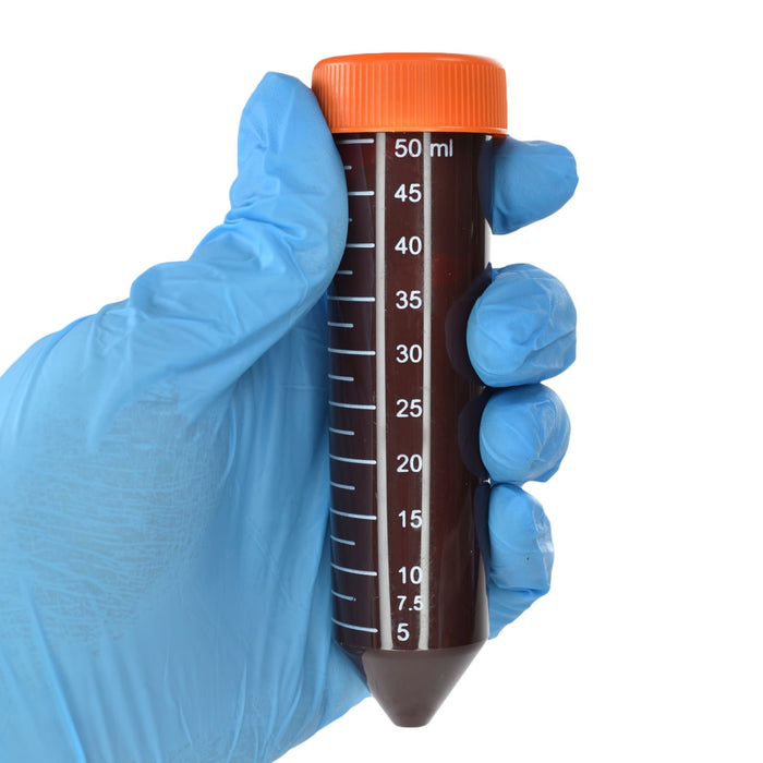 - 50ML AMBER CENTRIFUGE TUBES || Pack of 25 sterile polypropylene tubes with flat caps, designed for laboratory sample storage.