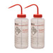Pack of 2 wash bottles featuring easy to read labeling and safety warnings. Color coded chemical identification and screw cap and nozzle. 1000ml capacity. Self venting.