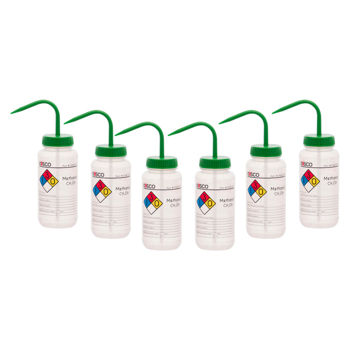 6PK Performance Plastic Wash Bottle, Methanol, 500 ml - Labeled (4 Color)