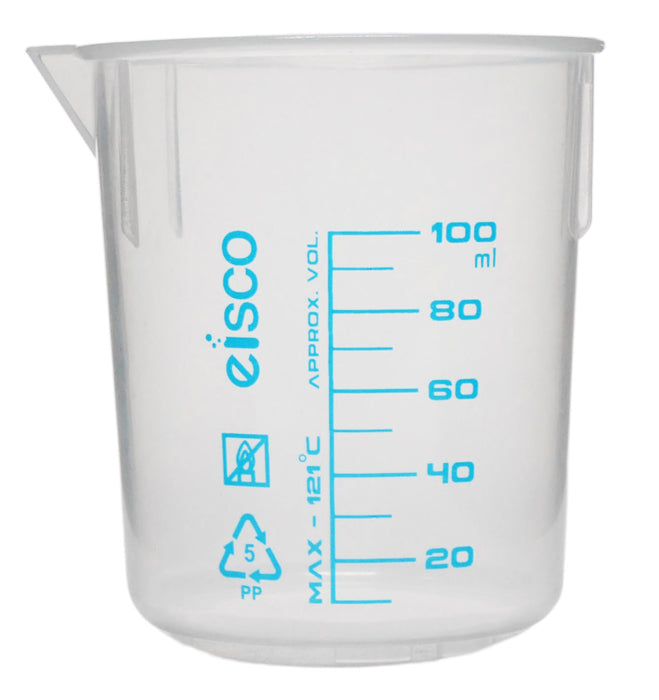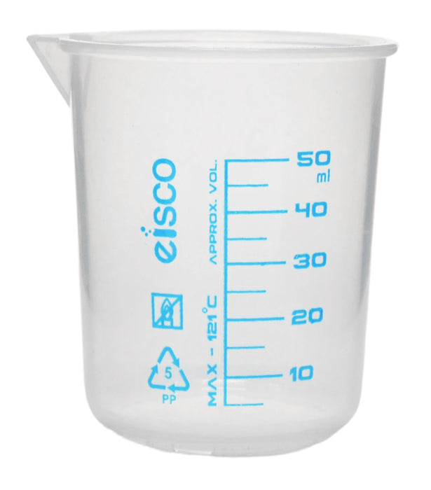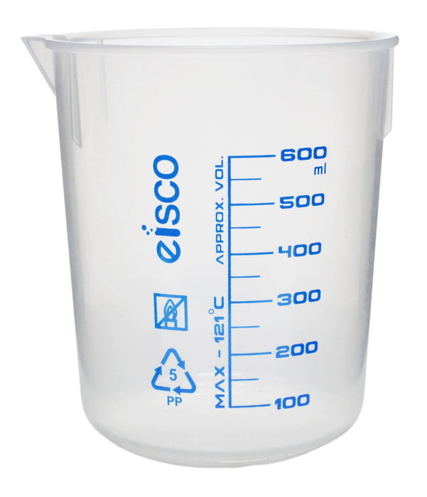5pc Beaker Set, Polypropylene - 50, 100, 250, 600 & 1000 - Screen Printed Graduations, Spout for Easy Pouring - Excellent Optical Clarity - Eisco Labs