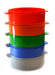 Made of easy to clean plastic and feature easy grip handles. Sieve set includes vibrant colored sieves in red, orange, green, blue, and gray.